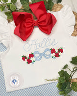 Our super soft, 100% cotton t shirt available with long and short sleeves, ruffled bottom. Other shirt styles available, message me. Machine wash, hang to dry. Please follow care instructions to keep your shirt looking like new.