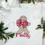 Gingerbread is a favorite holiday treat. We’ve dressed our girl up in gingham with a big bow.