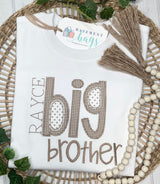 Great way to announce/celebrate new baby! Matching Big Brother/Sister shirts can be customized in so many ways. Handmade shorts can be added for a complete outfit. Message me for options.