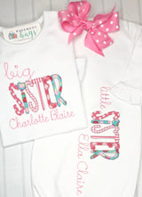 Great way to celebrate new baby! Matching Big/Little sister shirts and gown set. Many ways to make this unique. Big/little brother options available upon request.