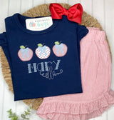 Adorable applique apple trio design. Can add first only or first & middle name.