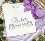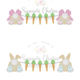 Bringing in Spring with these sweet bunny bums with carrots and bows. Shown here stitched in lavender, orange & green. Other colors and ‘no bow’ version available. Perfect sibling set design!
