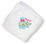 Most babies already love bath time, so this adorable personalized hooded towel will make them feel even more pampered! Perfect gift for the baby showers. Made from 100% cotton terry cloth, bound in white, pink gingham or blue gingham. Customized with the babies initials or name and an embroidery design of your choice. Use boxes below to enter desired text and design name.