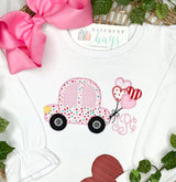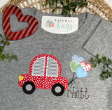 Love bug with heart balloons is our newest addition to the Valentine’s Day collection. Add name or monogram. Fabrics may vary but will be similar.