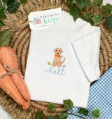 Oh, you are so cute Easter pup! Classic white, unisex tee with adorable left chest placement design . Add name for a completely unique look. Great option for older kiddos.