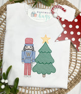 Christmas traditions! Nutcracker and star topped tree. Sample stitched with one initial on nutcracker chest but whole name can be added below. Please leave a note with your preference during checkout.