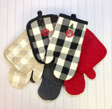 Pretty and practice! Great gift for every cook or those who just like cute kitchen decor! Oven mitt and matching pot holder are embroidered with mini design and circle monogram.