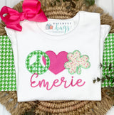 Top of the morning to ya! Irish or not, this is an adorable shirt to celebrate St. Patrick. Shown in shades of pink/green, but would be precious in green/navy, green/light blue or any other combo. Great option for gender neutral shirt or brother/sister sibling sets.
