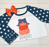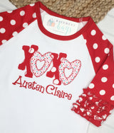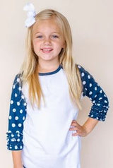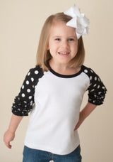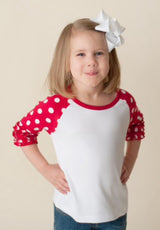 Polka dots and triple ruffled sleeves add a feminine touch to the classic raglan tee. So many ways to make this shirt unique and personal.