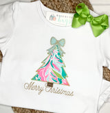 Preppy at it's best...brimming with holiday cheer. Authentic Lily fabric used in the simple tree design with just a touch of glitter to make this truly a little girl glam shirt.
