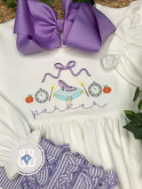 Pumpkins, magic wands and slippers...all the princess things! This true to size, super soft, long ruffled sleeve tunic is made of 95% cotton, 5% spandex. Available in winter white, aqua, and light pink.
