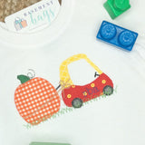 No such thing as too many pumpkin design shirts! We love celebrating Fall. This iconic Little Tikes coupe is busy delivering pumpkins! Great for boys and girls. Fabrics may vary depending on availability, which makes each shirt unique and adorable!