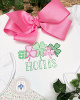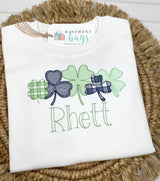 Top of the morning to ya! Irish or not, this is an adorable shirt to celebrate St. Patrick. Shown in green and navy, but also precious in green/pink, green/light blue or any other combo. Just leave a note during check out.