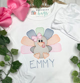 Adorable sketch stitch turkey with sweet bow. This one is cerThanksgiving day worthy! Matching boy design available, message me.