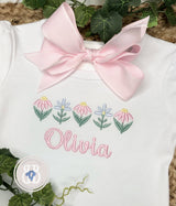 Hello gorgeous! Lovely embroidered Spring blooms in sweet pastel colors. all tied up with sweet ribbon.