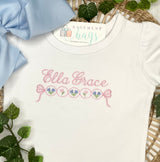 Spring is such a special time by itself, so simple designs are perfect! This bubble border with end bows and Spring buds is super sweet topped with vintage stitch name.
