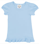 Super soft, 100% cotton shirt has short sleeves, ruffled bottom.