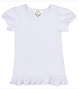 Oh, hey cute reindeer! This adorable Swirly antler reindeer is sure to be a holiday favorite. 100% cotton t shirt available with long and short sleeves, ruffled bottom.