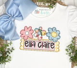 Three flowers and a name tag...all you need for simple, yet super cute everyday wear shirt. Pair with shorts, leggings or jeans.