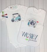 Perfect gift set for that l'il golfing buddy! This personalized gift set includes: