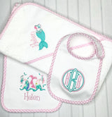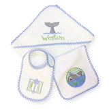 Personalized hooded towel,burp cloth, and monogrammed bib...what more could a baby need? especially when it's this cute! All items in this gift set are 100% machine wash/dryable comfortable cotton.
