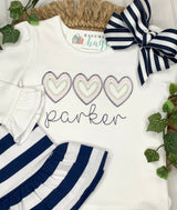 Valentine's Day can red and pinks or navy, pink and green…or any color combination your heart desires! Our simple vintage stitch paper hearts trio in any color combination would be adorable.