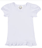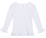 Our super soft, 100% cotton t shirt available with long and short sleeves, ruffled bottom. Machine wash, hang to dry. Please follow care instructions to keep your shirt looking like new