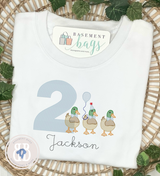 Dapper duck ready to celebrate! Birthdays are the most special of all celebrations! We have lots of shirt options and love to customize to match your party theme or your child's favorite character. If you don't see what you are looking for, just ask! basementbags.susan@gamil.com