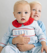 Custom Hand Smocked Name: Boy Diaper Set/Romper/Shorts Set
