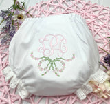 Floral Bow Monogrammed Diaper Cover