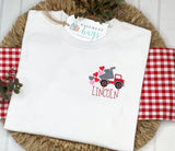 Now that's an adorable load of hearts! Mini dump truck is stitch as a LEFT CHEST design. Perfect for any age, but especially for the older guys. Name or initials can be added.