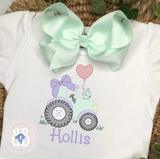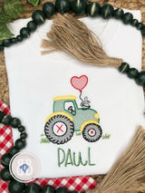 What's not to love here...tractors and heart shaped balloons! Perfect cuteness for every boy & girl that loves the farm life. Our super soft 100% spun cotton tee, available in several styles, is comfortable and easy care. We suggest turning inside out, machine wash and hang to dry to keep shirts looking their best.