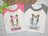 This listing is for a WHITE shirt. Samples shirts are raglan style which is available in limited quantity, send me a message for details.