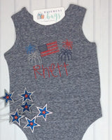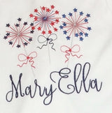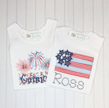 Celebrate summer in Red, White & Blue! Our classic tee shirt is Perfect! 100% cotton crew neck with short sleeve and straight hem for guys, puffed sleeves & ruffled bottom for girls. Other garments (bubbles, tanks, cap sleeve tees) available upon request)