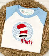 This listing is for a WHITE shirt with blue gingham fabric circle. If you prefer a different color circle, leave note during checkout.