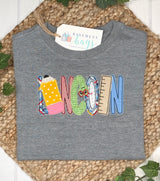 These adorable applique letters make this personalized t shirt extra special and Back to School ready! Every shirt is unique! 100% super soft, spun cotton tees are available in several styles for both boys and girls.