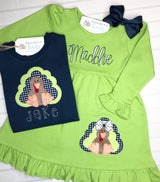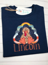 This listing is for turkey design on NAVY shirt. This design can also be stitched on a white shirt or a different color, dresses, onesies…