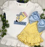 short sleeve, ruffled bottom shirts are made of super soft 100% cotton. Machine wash, hang to dry.