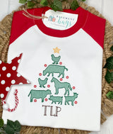 Favorite things..farm animals and Christmas trees! And check out the monogram used for the tree trunk!